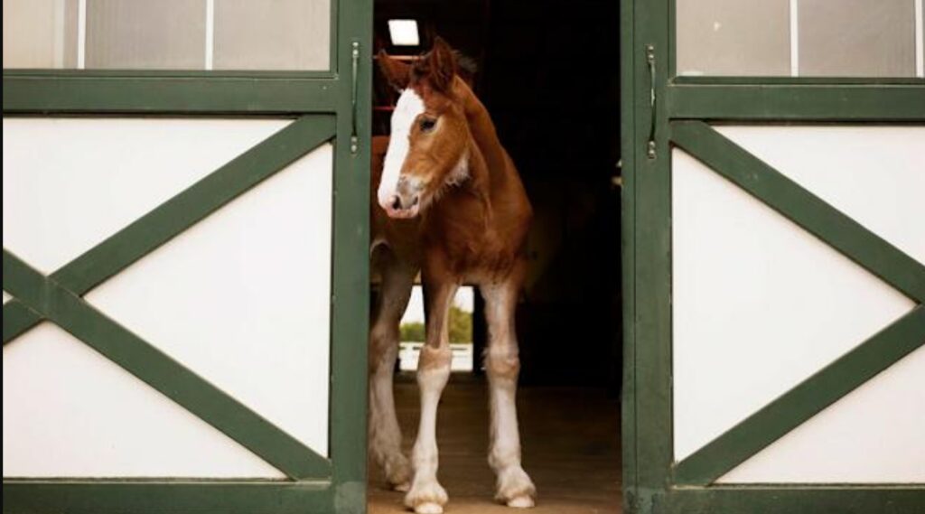 The story opens quietly, with a young Clydesdale foal stepping into the morning and breaking into a run across open land. The pacing is calm and measured, recalling Budweiser’s classic ads that allow scenes to breathe. As the foal moves through the field, it comes upon a bald eagle chick that has fallen from its nest, grounded and unable to fly. The encounter is gentle, setting an emotional tone rooted in care rather than drama.