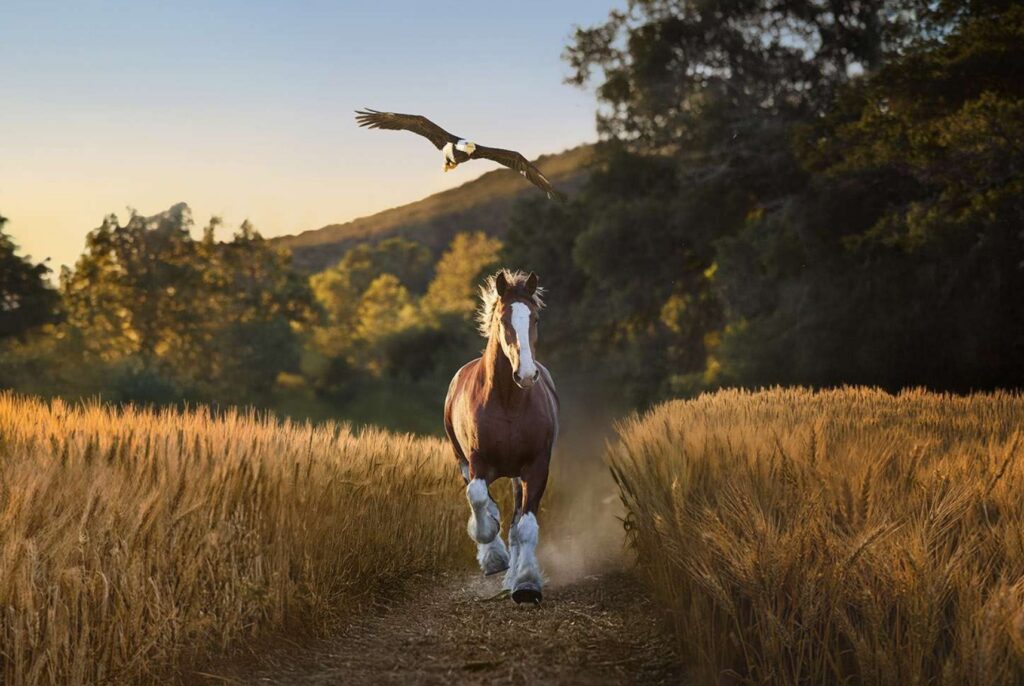 The commercial, titled “American Icons,” was created to celebrate Budweiser’s 150th year of brewing in the United States. Drawing on imagery long tied to the brand’s identity, the ad brings together two enduring American symbols: the Clydesdale and the bald eagle. The story unfolds patiently, showing the animals growing alongside one another, weathering storms and wide-open landscapes, until it culminates in the eagle standing proudly on the horse’s back, wings outstretched—an almost mythical image that many compared to a living pegasus.